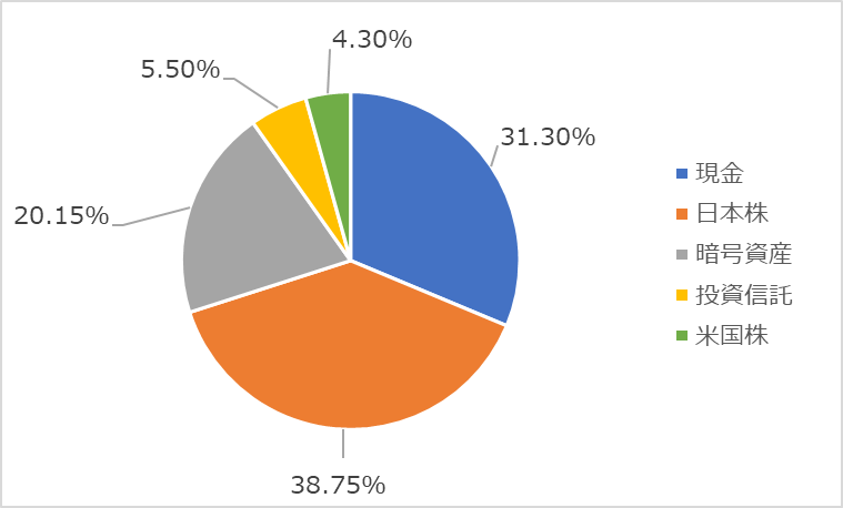 ポートフォリオの割合は、先月と比較して暗号資産の割合が減少し、他は増加しました。